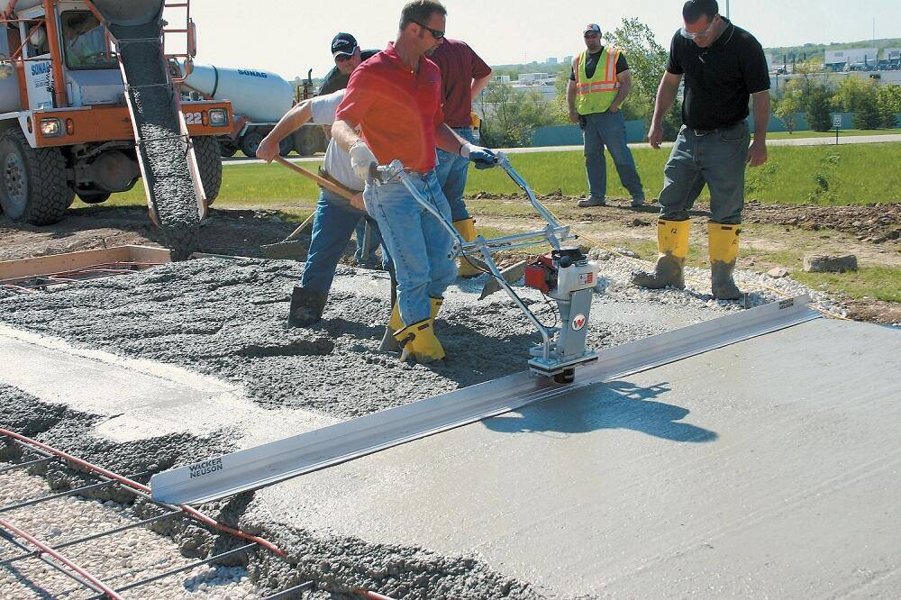 - Инструменты для бетона. Пригодятся для работы с тяжелым раствором на обширных площадках. Приборы массивные, много весят, часто применяются в строительстве, на открытом воздухе.