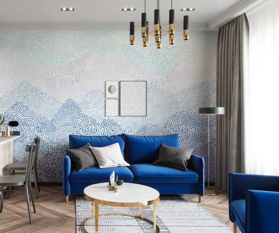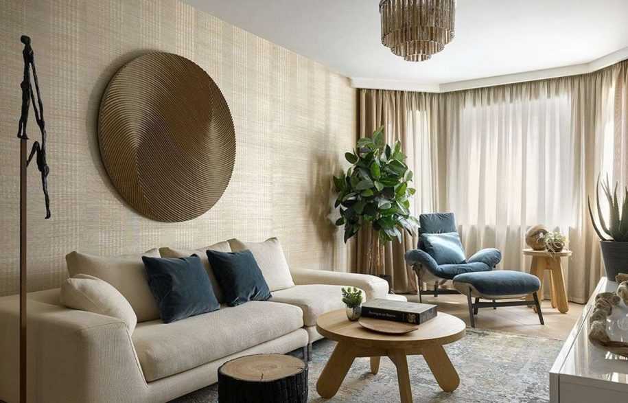 Гостиные комнаты могут быть отделаны полотнами любой цветовой гаммы, фактуры, но лучше, чтобы она поддерживала общий стиль помещения.
