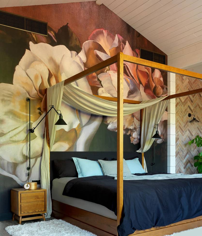 Крупный рисунок стоит выбирать с особой осторожностью, чтобы максимально гармонично вписать их в интерьер и не засорить визуально общее восприятие обстановки. В комнатах с низкими потолками и маленьких размеров не рекомендуется украшать стены размашистыми узорами.