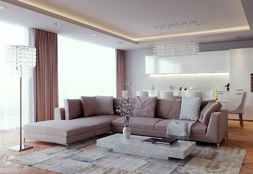 Нужно быть особенно внимательным при выборе потолочного карниза с багетом или без, ведь именно на этот элемент обращают внимание гости, впервые попадающие в помещение. Оптимальным вариантом будет карниз, который прекрасно сочетается со шторами, мебелью, а также декоративной отделкой стен