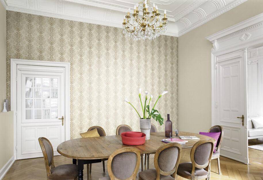Роскошные орнаменты. Декораторы не устают придумывать все новые и новые, потрясающие своей сказочностью и причудливостью форм коллекции. Гордые павлины, диковинные растения, кружевные оборки, плетеные текстуры, старинные письмена – эти обои так и хочется назвать произведением искусства! Сделайте вашу кухню по-королевски дерзкой и стильной!