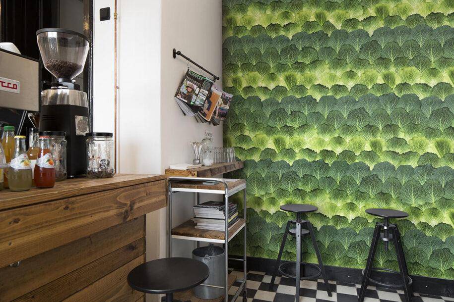 Если весь интерьер будет покрыт обоями, то лучше всего подойдут тонкие узоры или структурные обои однородного цвета. Однако ничто не мешает разместить обои с характерным рисунком на фрагменте стены, например, между кухонными шкафами — с фруктовыми или другими красочными мотивами.