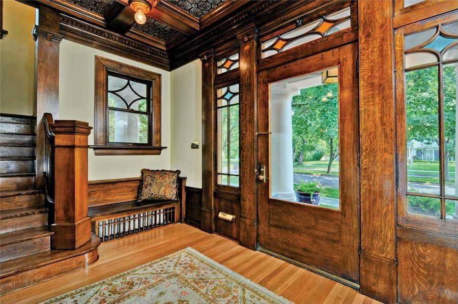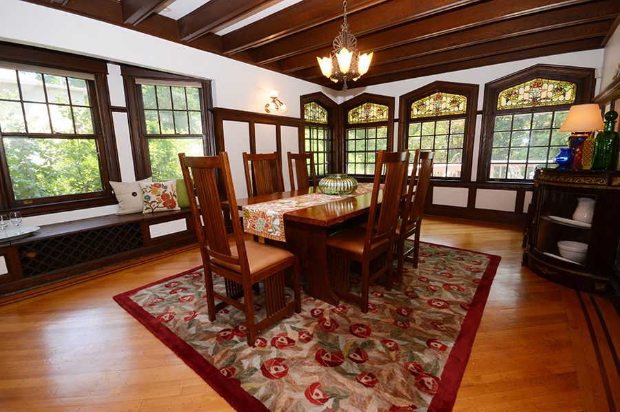 Витражи отлично сочетаются с деревом, но требуют пространства