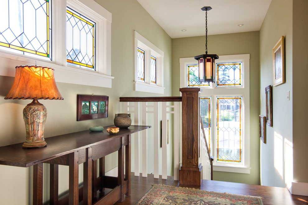 Самостоятельно вписать витражи в интерьер проще, если выбрать не слишком яркие краски