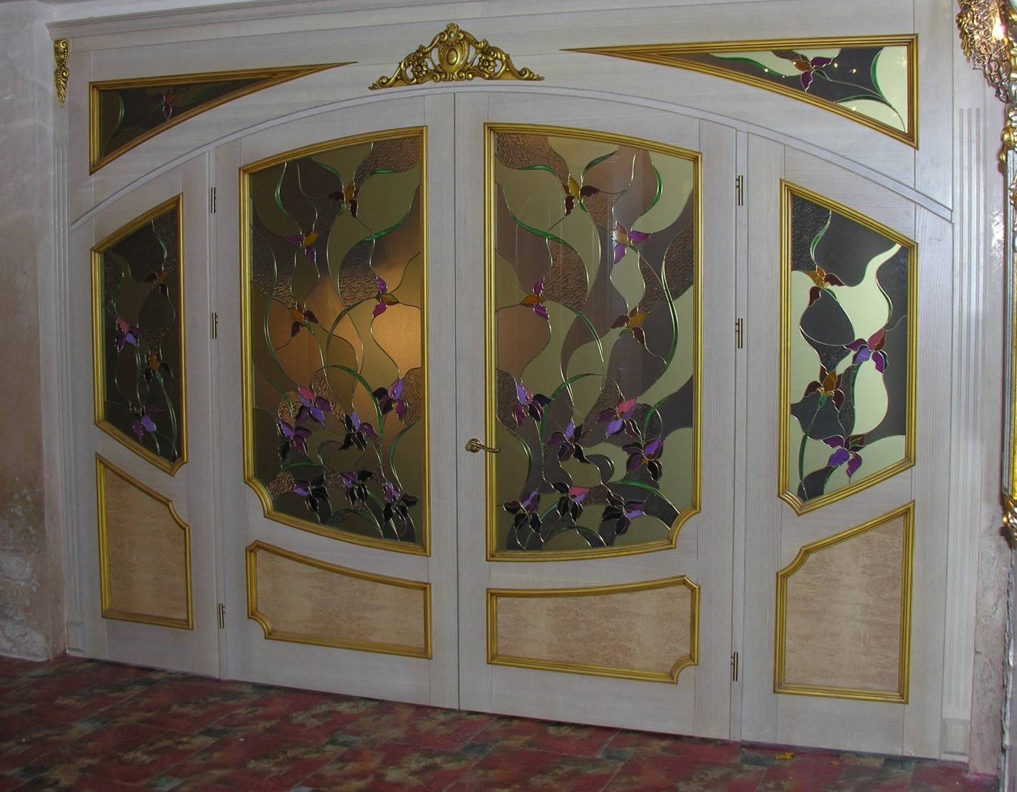 Витражные двери сделают интерьер комнаты оригинальным, эксклюзивным. При этом они выполняют основные функции: защищают, разделяют пространство на зоны, сохраняют тепло, препятствуют проникновению посторонних звуков, запахов.