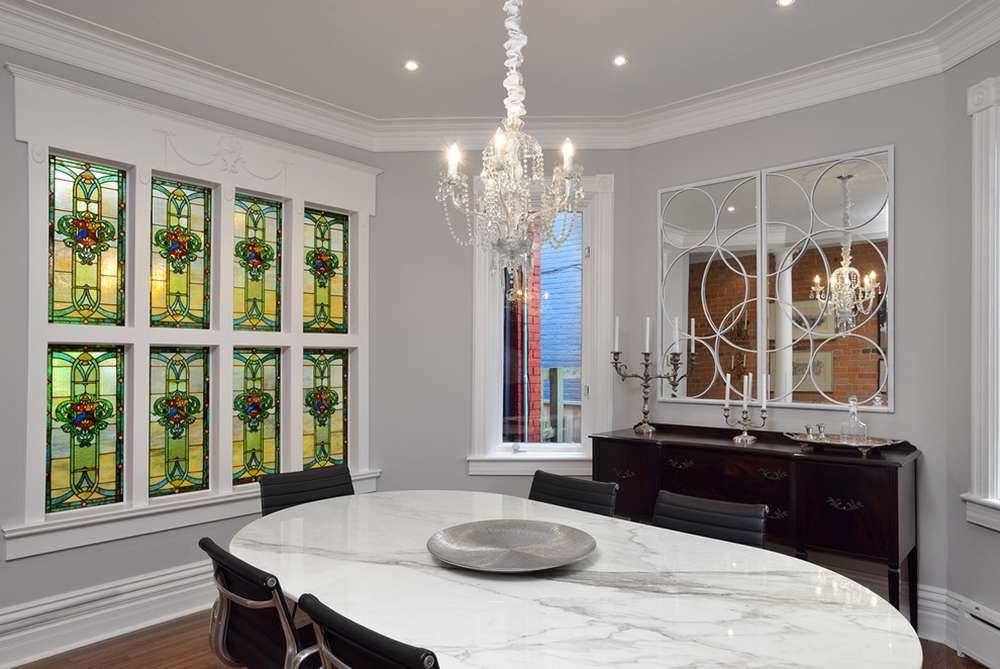 Окно с витражами нужной степени создает ощущение изолированности и подходит для дизайна любого помещения