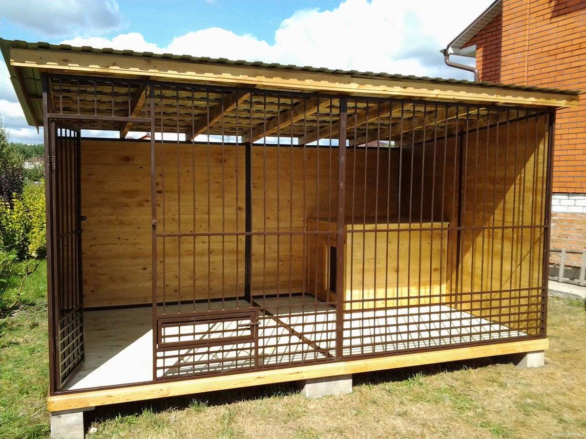 - Если вольер будет деревянным, то каркас желательно все же сделать металлическим, а вот обшивку уже из дерева.