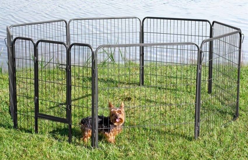 Для небольших собачек миниатюрных пород достаточно купить вольер-манеж без крыши. Такое ограждение с сетчатыми или прозрачными стенками прекрасно подойдёт и для недавно родившихся щенков. Мама сможет передвигаться по всему дому свободно и видеть потомство издалека, а щенки не смогут выйти за пределы манежа.