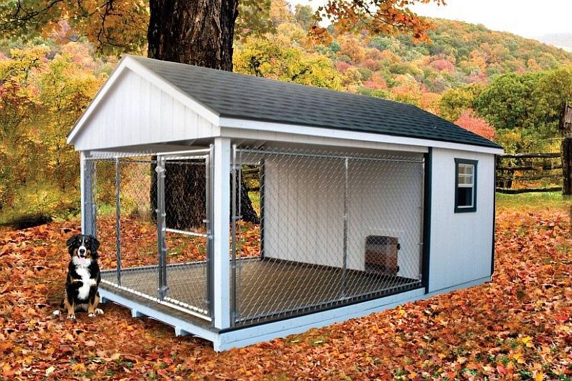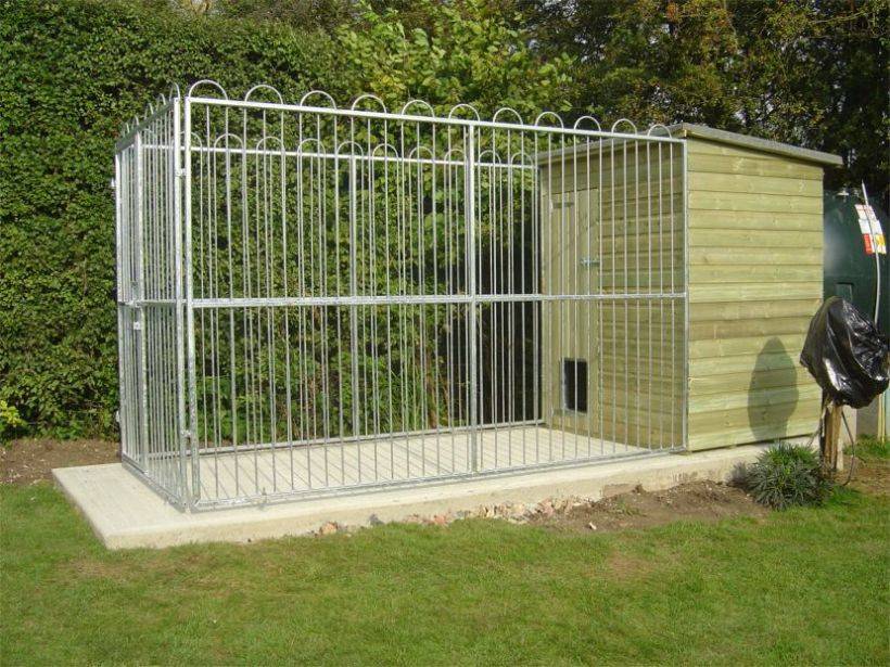 Отдельно стоит отметить, что вольер предусматривает наличие спального места для собаки, которое защищено от ветра, дождя и холода. Для этого можно использовать будку, но если она является частью вольера, то строить ее не нужно.