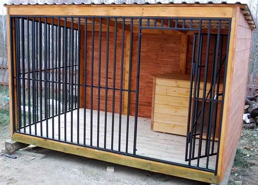 - Устроительством и установкой конуры нужно озаботиться до того, как построить вольер, иначе она может не пройти в калитку.
