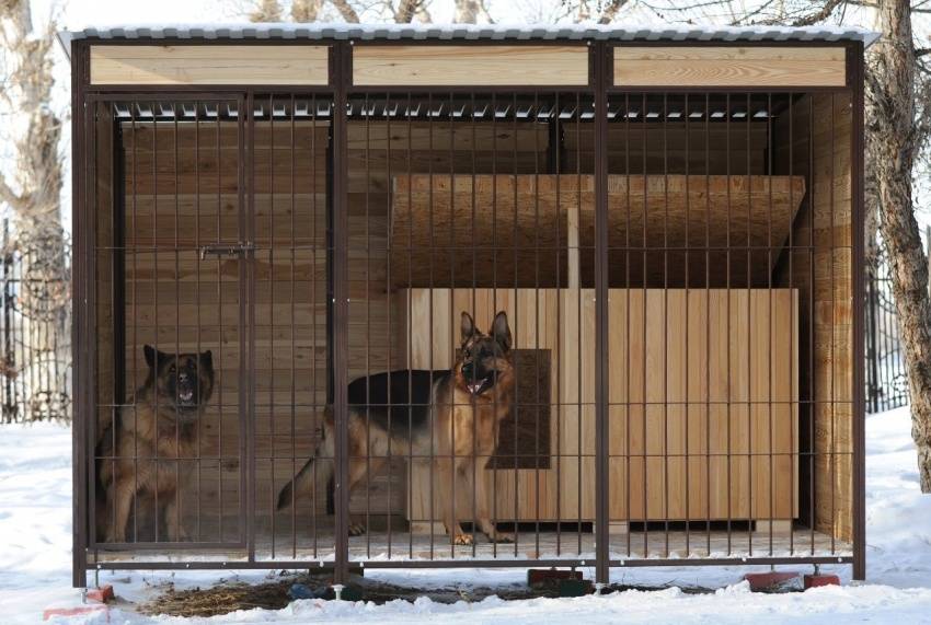 - Вольеру не должен грозить сход снега. Если на крышу внезапно упадет огромная масса с соответствующим звуком, собака получит шок. Загнать ее в вольер будет очень проблематично.