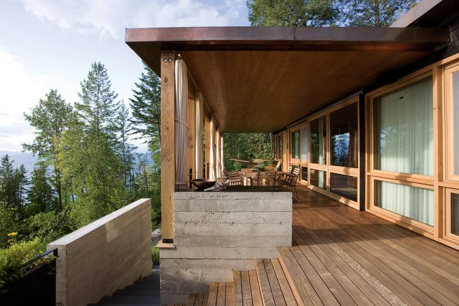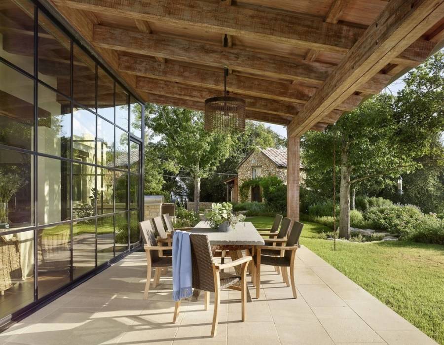 Она постепенно превращается из крыльца в место, где установлено барбекю или мебель для отдыха. В отдельных проектах терраса построена по всему периметру дома.