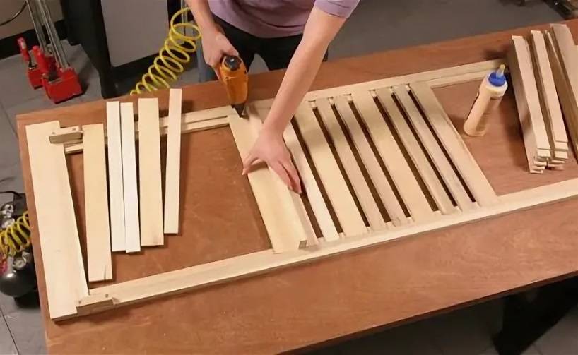 - Вставить ламели и приклеить их клеем ПВА.