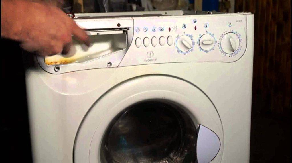 - Убрать дозатор порошка, а затем аккуратно демонтировать панель управления. Чаще всего она крепится на простые защелки или несколько винтов.